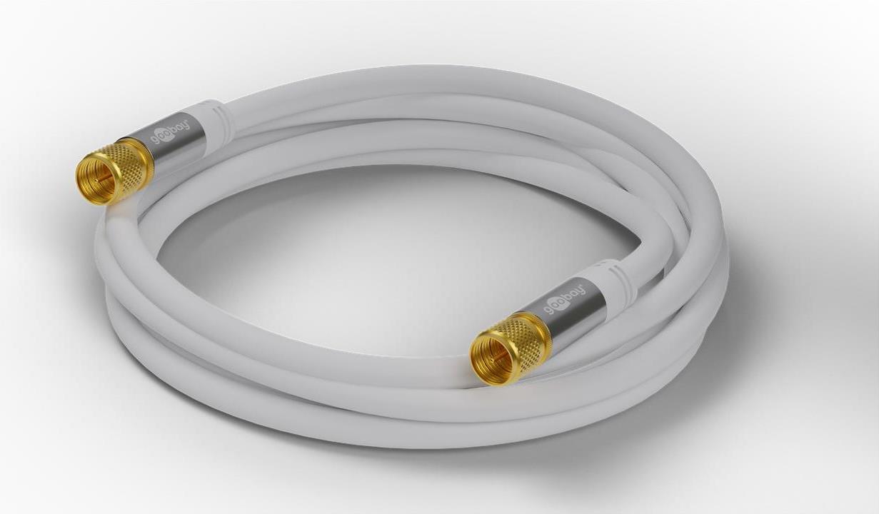 Goobay SAT Antennenkabel (135 dB typ), 4x geschirmt, 10 m, Weiß - vergoldet, F-Stecker > F-Stecker (70653)