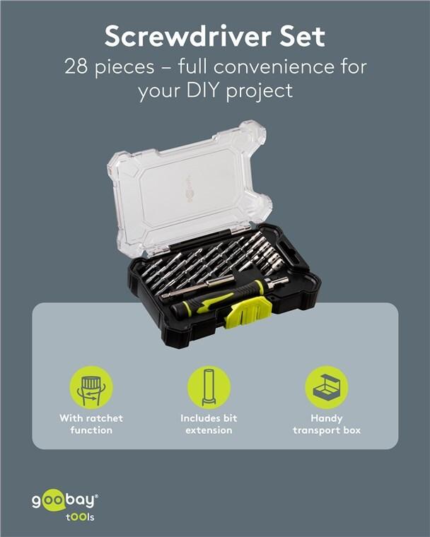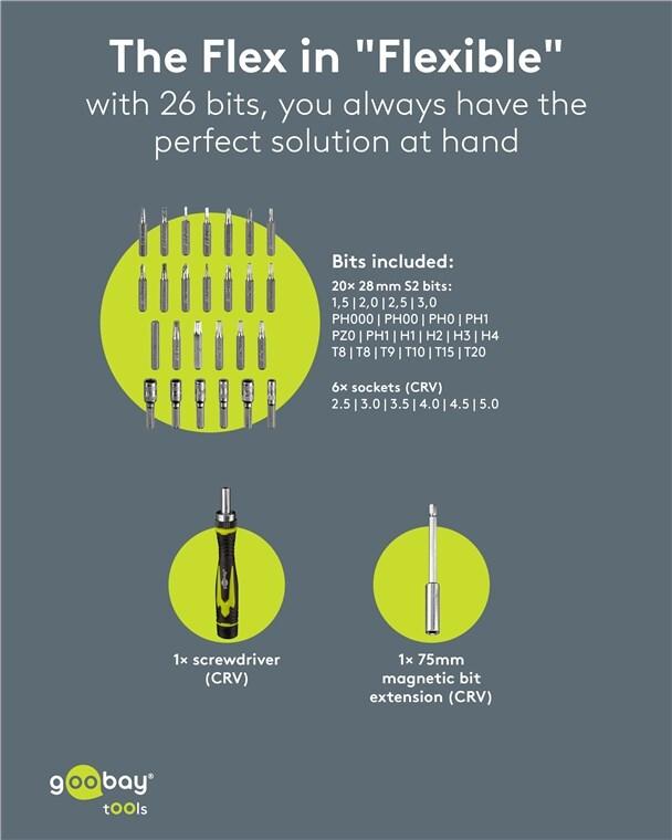 Goobay Schraubendreher-Set mit 26-tlg. Bitsatz - Werkzeug-Set für feinmechanische Schraub (77840)