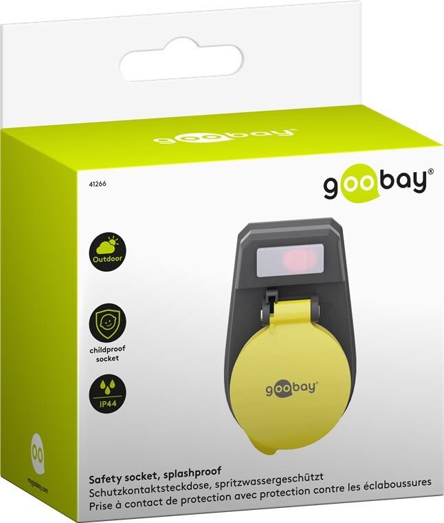 Goobay Schutzkontaktsteckdose, spritzwassergeschützt, Schutzkontaktbuchse (Typ F, CEE 7/4), Schwarz - 1-er Schutzkontakt-Steckdosenadapter mit Schalter für den Außenbereich geei (41266)