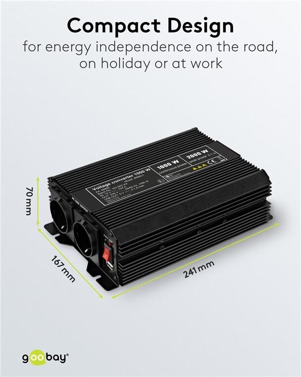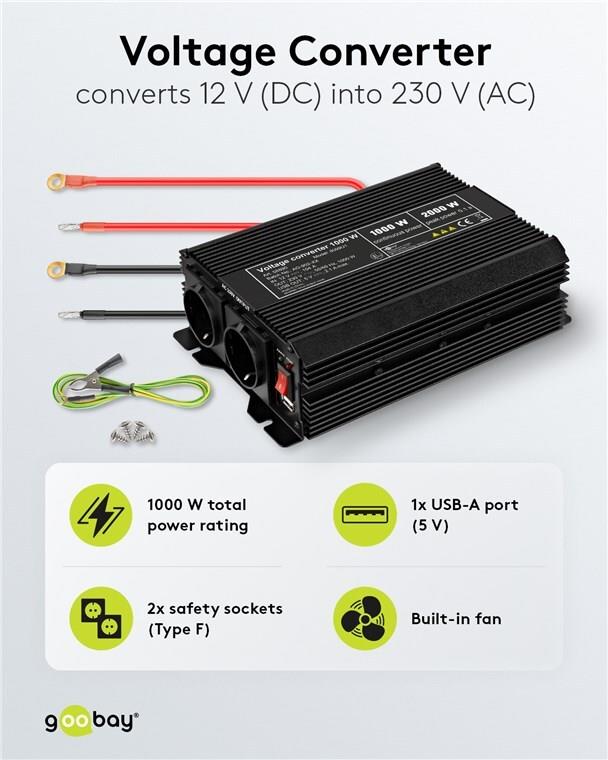 Goobay Spannungswandler 1000 W, Schwarz - wandelt 12 V DC in 230 V AC um (58890)