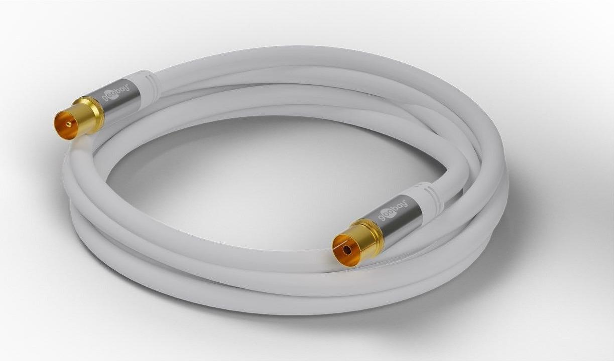 Goobay TV Antennenkabel (135 dB typ), 4x geschirmt, 10 m, Weiß - vergoldet, Koax-Buchse > Koax-Stecker (70325)
