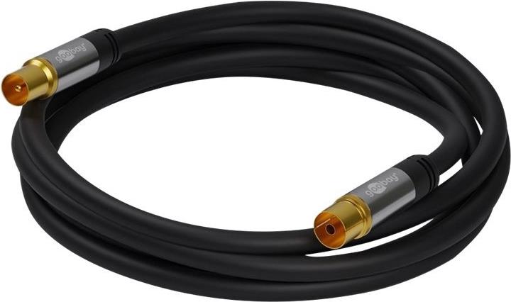 Goobay TV Antennenkabel (135 dB typ), 4x geschirmt, 1 m, Schwarz - vergoldet, Koax-Buchse > Koax-Stecker (70346)