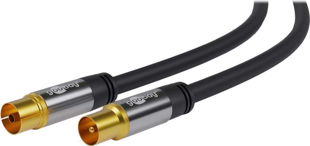 Goobay TV Antennenkabel (135 dB typ), 4x geschirmt, 5 m, Schwarz - vergoldet, Koax-Buchse > Koax-Stecker (70384)