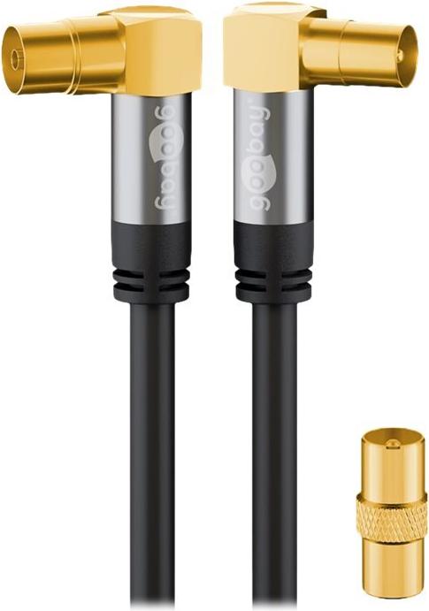 Goobay TV Antennenkabel (135 dB typ), 4x geschirmt, 2 m, Schwarz - vergoldet, Koax-Buchse 90° > Koax-Stecker 90° (70461)