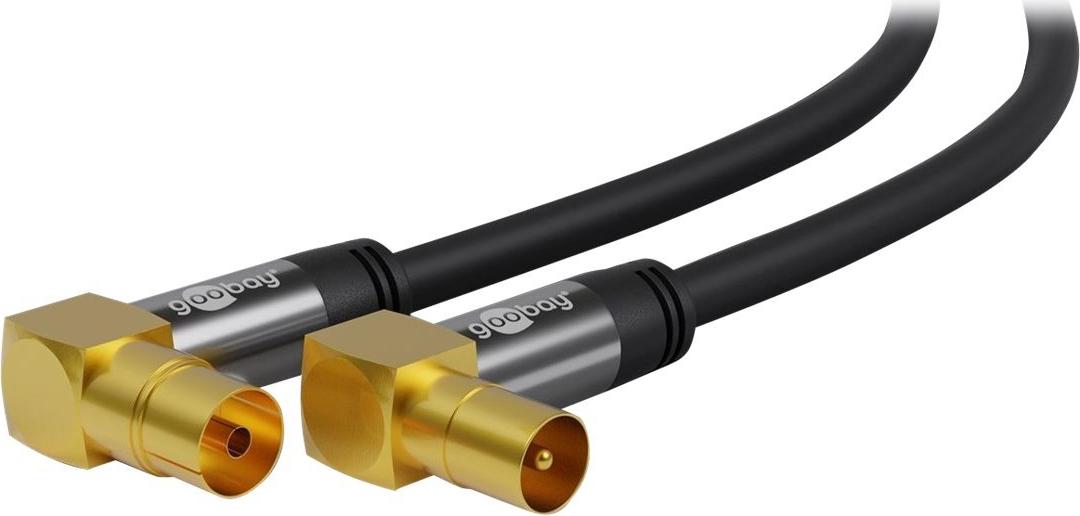 Goobay TV Antennenkabel (135 dB typ), 4x geschirmt, 10 m, Schwarz - vergoldet, Koax-Buchse 90° > Koax-Stecker 90° (70475)