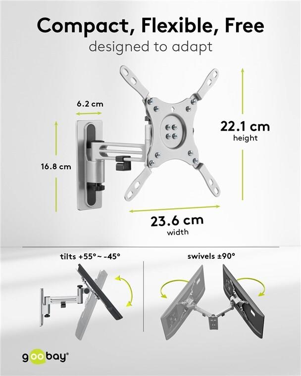 • Goobay TV-Wandhalterung Caravan FULLMOTION (M), Silber (71988)