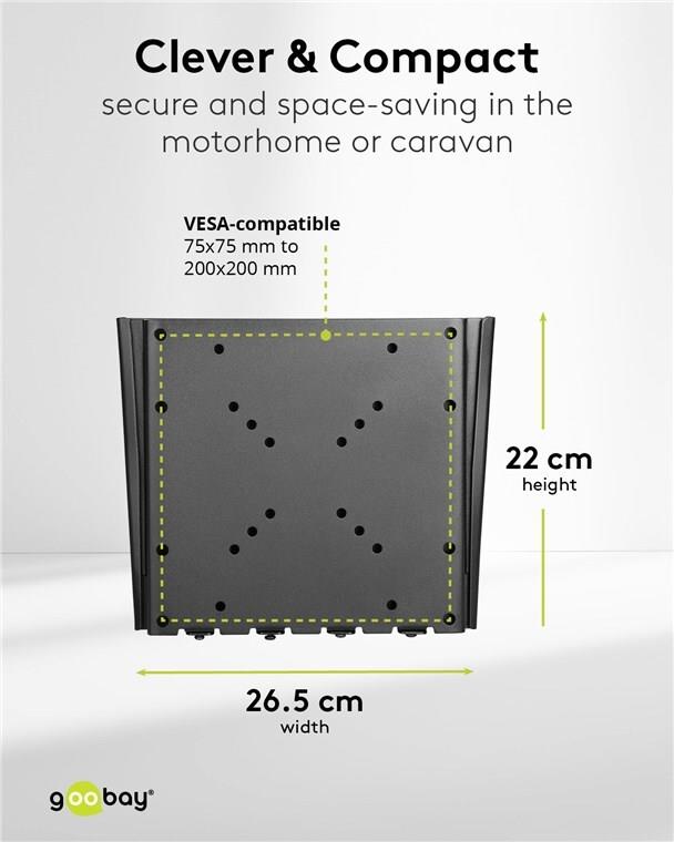 Das Wentronic Goobay Basic-Montageset bietet eine zuverlässige Lösung für die sichere Befestigung von Flachbildschirmen mit einer Größe von 23 bis 42 Zoll. Diese mittelgroße Halterung wurde für die Wandmontage entwickelt und trägt eine maximale Last von 30 kg, sodass sie für verschiedene Display-Optionen geeignet ist. Das Montageset ist mit einem Verriegelungsmechanismus und einem vibrationsdämpfenden Gelenk ausgestattet, sodass Ihr Bildschirm in jeder Umgebung stabil und sicher bleibt.