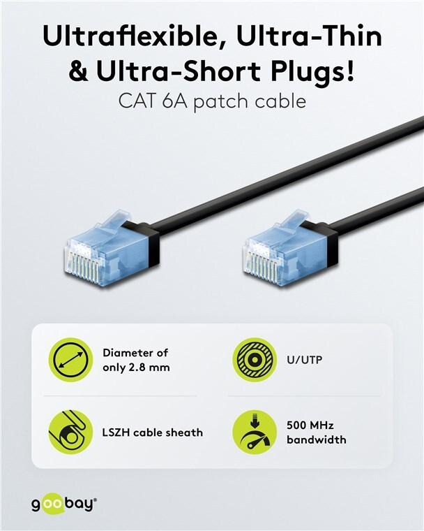 • Goobay Ultraflexibles CAT 6A Patchkabel slim U/UTP schwarz - extrakurze Stecker reiner (74234)