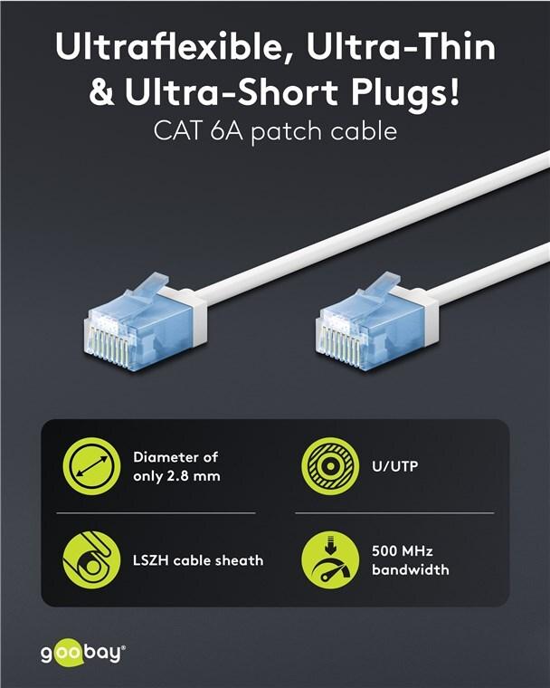 • Goobay Ultraflexibles CAT 6A Patchkabel slim U/UTP weiß - extrakurze Stecker reiner (74299)
