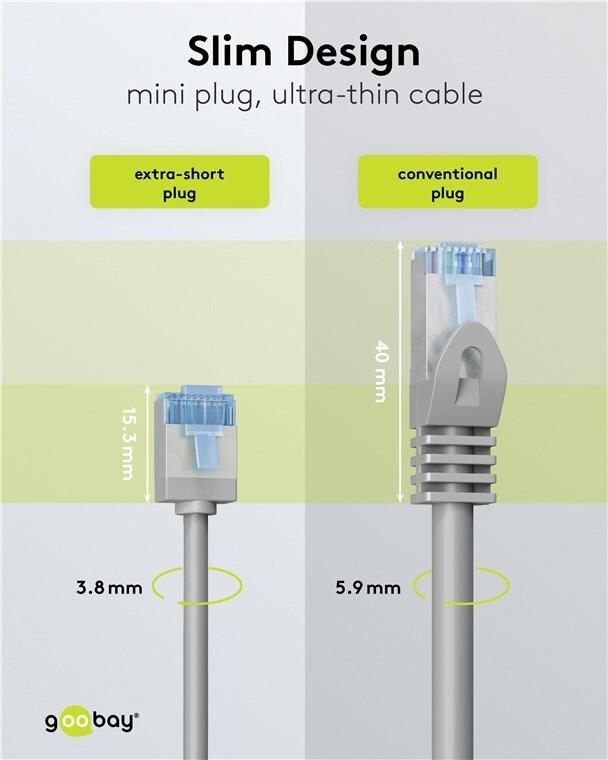 • Goobay Ultraflexibles CAT 6A Patchkabel slim U/FTP grau - extrakurze Stecker reiner (74305)