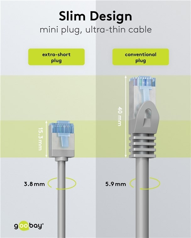 • Goobay Ultraflexibles CAT 6A Patchkabel slim U/FTP grau - extrakurze Stecker reiner (74312)