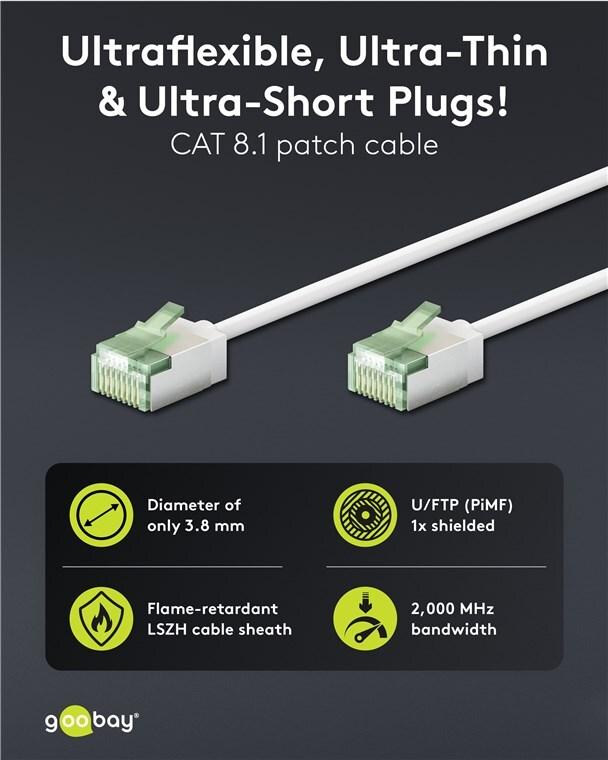 Goobay Ultraflexibles CAT 8.1 Patchkabel slim U/FTP weiß - extrakurze Stecker 99.9% (74361)