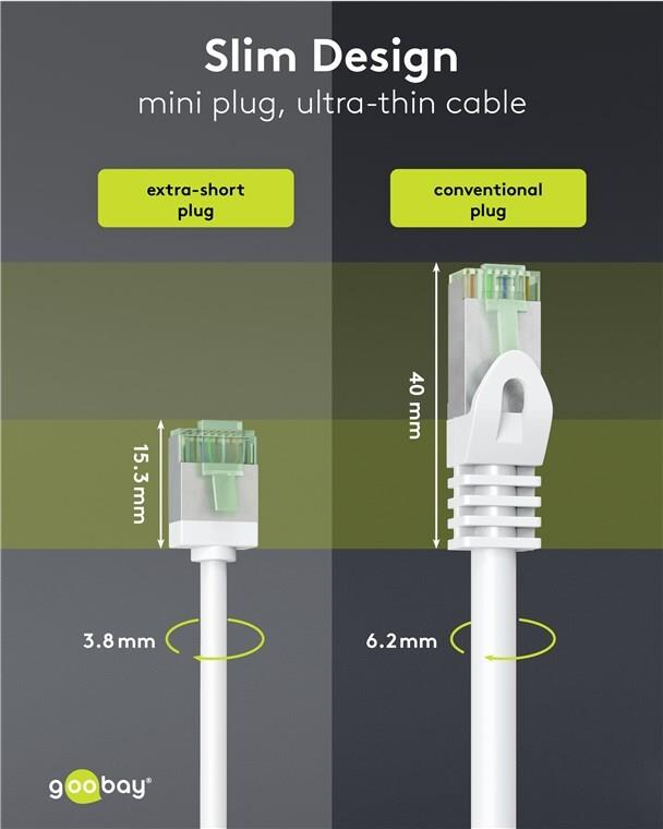 • Goobay Ultraflexibles CAT 8.1 Patchkabel slim U/FTP weiß - extrakurze Stecker 99.9% (74363)