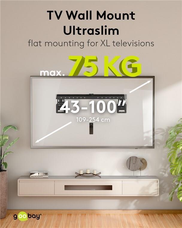 • Goobay Ultraslim TV-Wandhalterung Basic FIXED (XL), schwarz (70822)