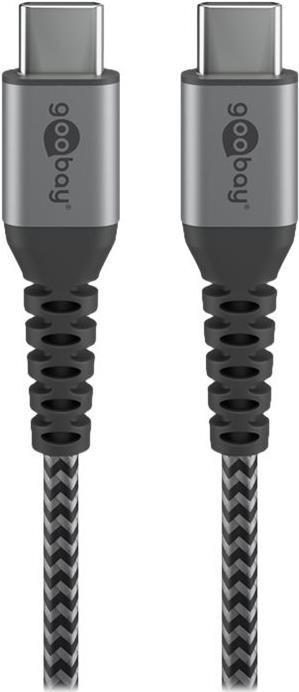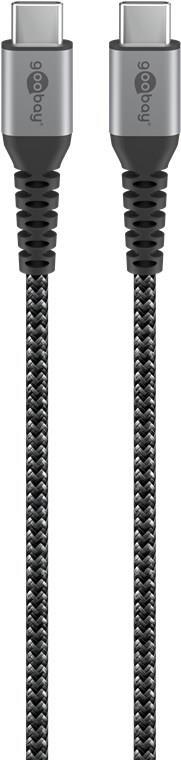 Goobay USB-C™ auf USB-C™ Textilkabel mit Metallsteckern (space grau/silber) 0,5 m, 0.5 m, Schwarz-Grau - elegantes und extra-robustes Verbindungskabel für Geräte mit USB-C™ An (49301)