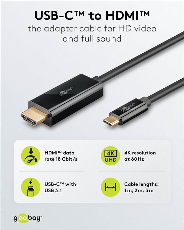 • Goobay USB-C -auf-HDMI -Kabel 4K a 60 Hz 3 m schwarz - -Stecker> HDMI (75698)