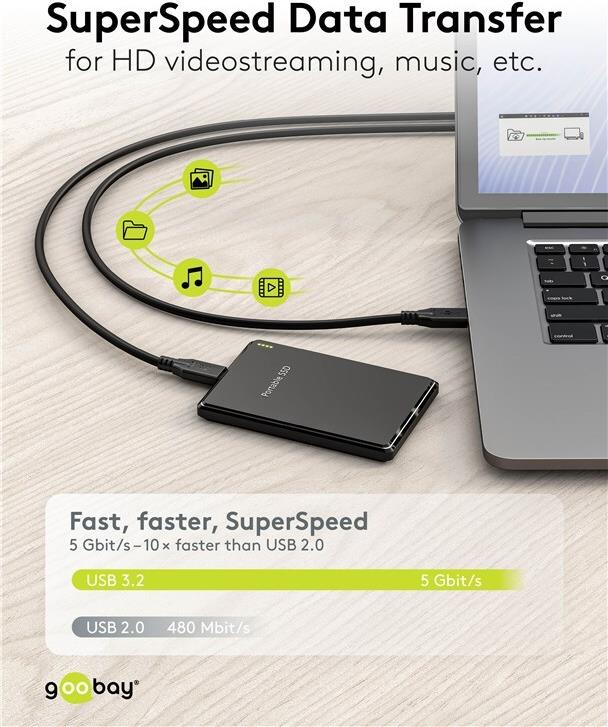 • Goobay USB-C -Kabel USB 3.2 60 W 5 Gbit/s Power Delivery 1 m - -Stecker> (74726)
