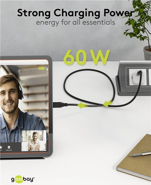 • Goobay USB-C -Kabel USB 3.2 60 W 5 Gbit/s Power Delivery 2 m - -Stecker> (74728)