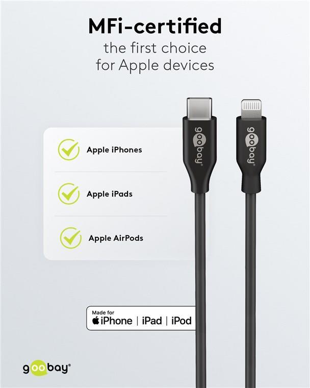 Goobay USB-C™ Lade- und Synchronisationskabel, 2 m, Schwarz - MFi-Kabel für Apple iPhone/iPad Schwarz (39447)