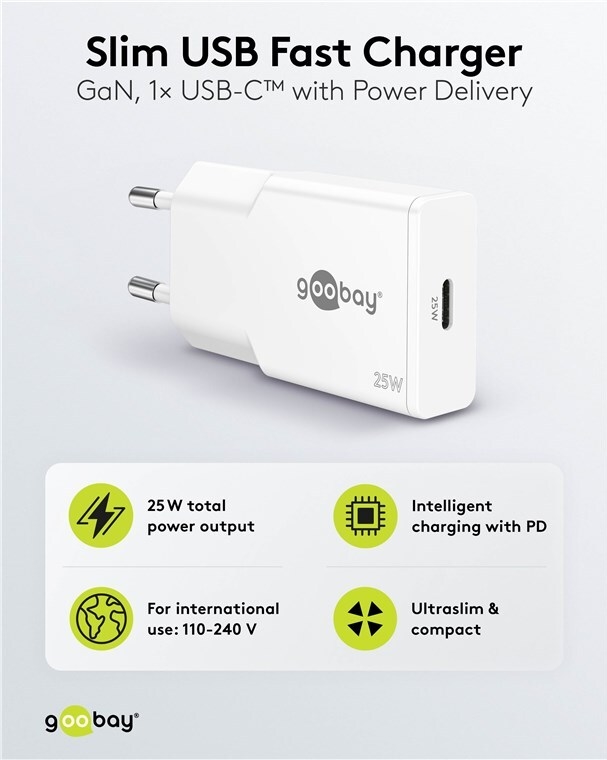 • Goobay USB-C PD GaN Schnellladegerät Slim 25 W weiß - 1x -Anschluss Power (75732)