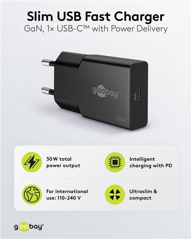 • Goobay USB-C PD GaN Schnellladegerät Slim 30 W schwarz - 1x -Anschluss Power (75735)