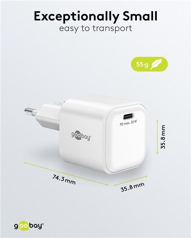 Goobay USB-C™ PD GaN Schnellladegerät Nano (20 W) weiß (76691)