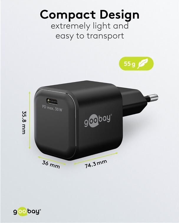 • Goobay USB-C™ PD GaN Schnellladegerät Nano (30 W) schwarz (79152)