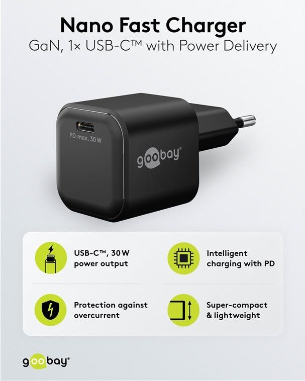 Goobay USB-C™ PD GaN Schnellladegerät Nano (30 W) schwarz (79152)