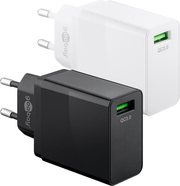 Goobay USB-Schnellladegerät QC3.0 18W, Weiß - lädt bis zu 4x schneller als Standardladegeräte (44955)