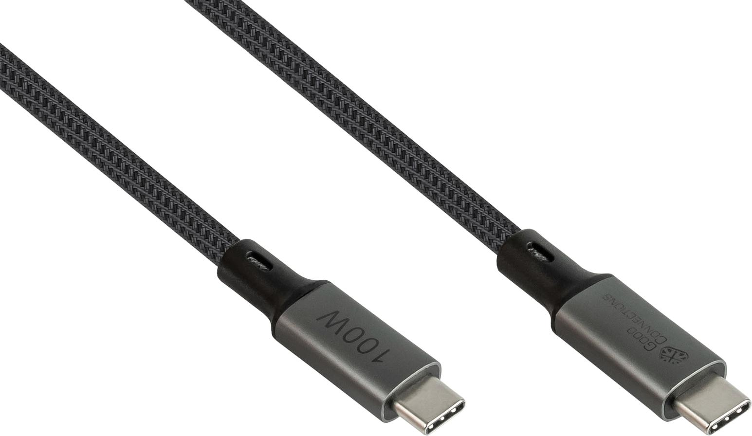 Good Connections USB 4.0 Gen. 2x2 Kabel 20GBit/s 100W 8Ka30Hz USB-C Stecker an - Mit dem hochwertig verarbeiteten und USB-IF zertifizierten USB 4.0 Gen. 2x2 Kabel von Good Connections® können Sie Ihre USB-C™-Geräte nicht nur mit bis zu 100 Watt in kürzester Zeit aufladen - sondern übertragen zeitgleich mühelos und mit beeindruckender Geschwindigkeit von bis zu 20 Gbit/s Daten. Zudem bietet es durch 8K Ultra HD Unterstützung ein erstklassiges Bilderlebnis.<br /> <br /> <b>Hochwertige Verarbeitung und edles Design</b><br /> Das Good Connections® USB 4.0-Kabel ist mit seinem eleganten und robusten Textilgeflecht und seinen stabilen Vollmetallanschlüssen ein stets zuverlässiger Begleiter und ein echter Blickfang. Das herausragend verarbeitete Kabel ist flexibel und stabil zugleich. Ausgewählte - hochwertige Materialien sorgen für eine lange Nutzungsdauer - selbst bei täglichem Gebrauch.<br /> <br /> <b>Universelle Konnektivität und beeindruckende 40-Gbit/s Datenübertragung</b><br /> Dieses High-End USB-Kabel ermöglicht in Verbindung mit USB 4.0 kompatiblen Geräten sehr hohe Datenübertragungsraten von bis zu 20 Gbit/s. Übertragen Sie selbst große Videodateien in kürzester Zeit zwischen verschiedenen Geräten. Selbstverständlich ist es zeitgleich abwärtskompatibel zu den bisherigen USB-Versionen. Machen Sie Schluss mit einer Vielzahl unterschiedlicher Kabel und verbinden Sie mit dem Good Connections® USB 4.0 Kabel mühelos und per Plug-and-Play Ihren Mac - MacBook - iPad - Notebook - Chromebook - Surface und viele weitere USB-C™ Geräte.<br /> <br /> <b>Gestochen scharfe (2402-T018A)