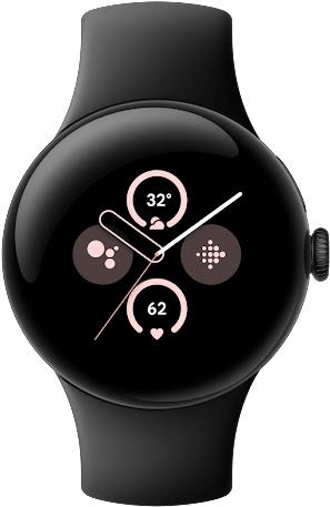Google Pixel Watch 2 - Matte black aluminum - intelligente Uhr mit Active Armband - Flouroelastomer - Obsidian - Bandgröße: S/L - 32 GB - Wi-Fi, NFC, Bluetooth - 31 g (GA05029-DE)