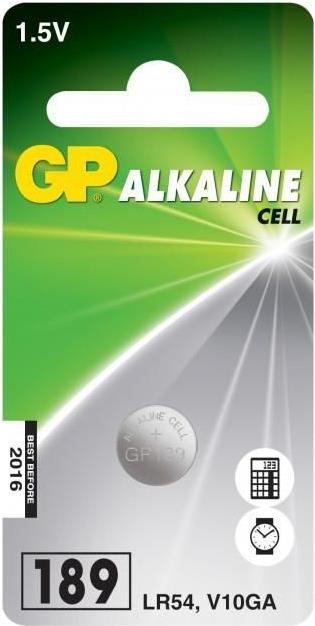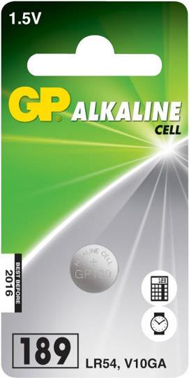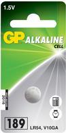 GP Batteries 189, Alkaline Cell. Batterietechnologie: Alkali, Batterie Formfaktor: Knopf/Münze, Batteriespannung: 1,5 V. Höhe: 3,05 mm, Durchmesser: 1,16 cm (102004)