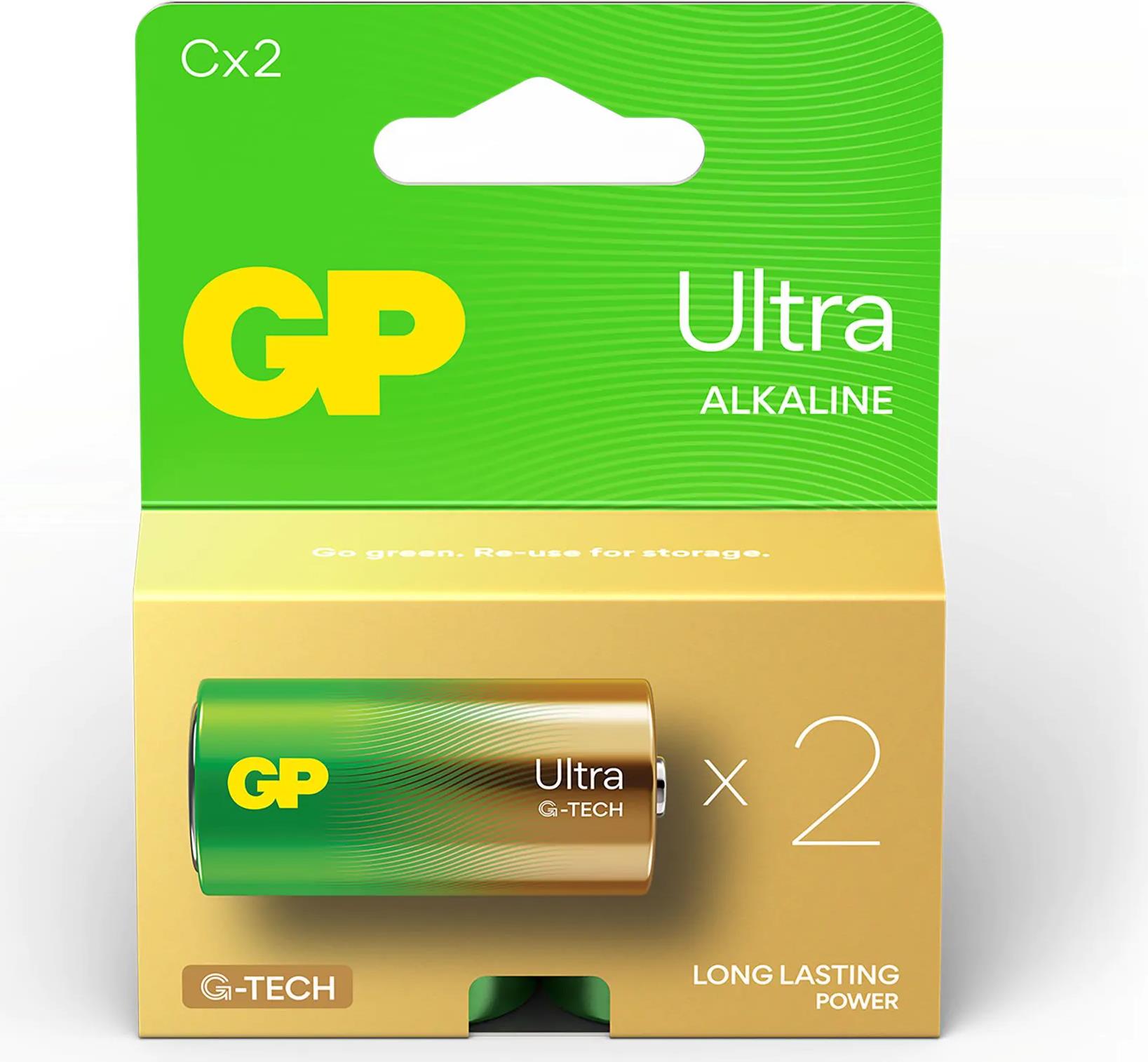 Entdecken Sie die Kraft der Zuverlässigkeit mit der GP Ultra C-Batterie von Gold Peak. Entwickelt für diejenigen, die Sicherheit und Effizienz verlangen, bietet diese Batterie ein Design, das Ihre Geräte schützt und für Ruhe sorgt. Mit ihrer Alkalitechnologie liefert sie eine konstante Leistung von 1,5 V und eignet sich damit für eine Vielzahl von Allzweckbatterien. Ob für Haushaltsgeräte oder Werkzeuge am Arbeitsplatz, die GP Ultra-Batterie ist ein Beweis für das Engagement von Gold Peak für Qualität und Leistung.Produkttext[/head]Holen Sie das Beste aus Ihren Geräten heraus - mit den leistungsstarken GP Ultra C Baby Batterien mit G-TECH-Technologie. G-TECH sorgt für eine längere Lebensdauer Ihrer Geräte. Und so funktioniert\'s: Die Batterien liefern mehr Leistung durch die Verwendung von hochreinem Graphit. Darüber hinaus wird hochwertiges Zink-S-Pulver verwendet, das eine schnelle Energieaufnahme und eine gleichbleibend hohe Leistung über einen längeren Zeitraum gewährleistet. Der patentierte Auslaufschutz verhindert das Auslaufen der Batterien und schützt so Ihre Geräte. Diese Ultra+ C Alkaline-Batterie wurde für die beliebtesten tragbaren Geräte entwickelt, wie z.B.: Taschenlampen, Spielzeug, Messgeräte und mehr. Wird pro 2 Stück in einer 100%igen Papierverpackung geliefert. Entscheiden Sie sich für GP Ultra C-Batterien mit G-TECH-Technologie und genießen Sie die starke Leistung, die Ihre Geräte benötigen.[head]Hauptmerkmale