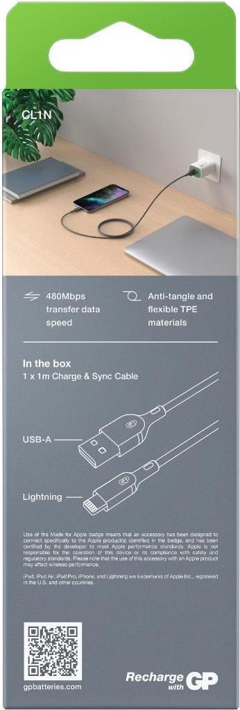 GP Batteries CL1N USB Kabel 1 m USB 2.0 Lightning USB A Grau (160GPCL1N-C1)