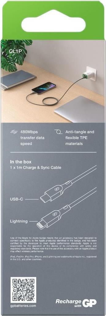 GP Batteries CL1P USB Kabel 1 m USB C Lightning Grau (160GPCL1P-C1)