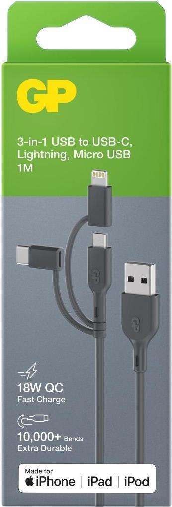 GP Batteries CY1N USB Kabel 1 m USB A USB C/Micro-USB B/Lightning Grau (160GPCY1N-C1)