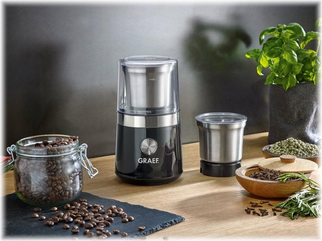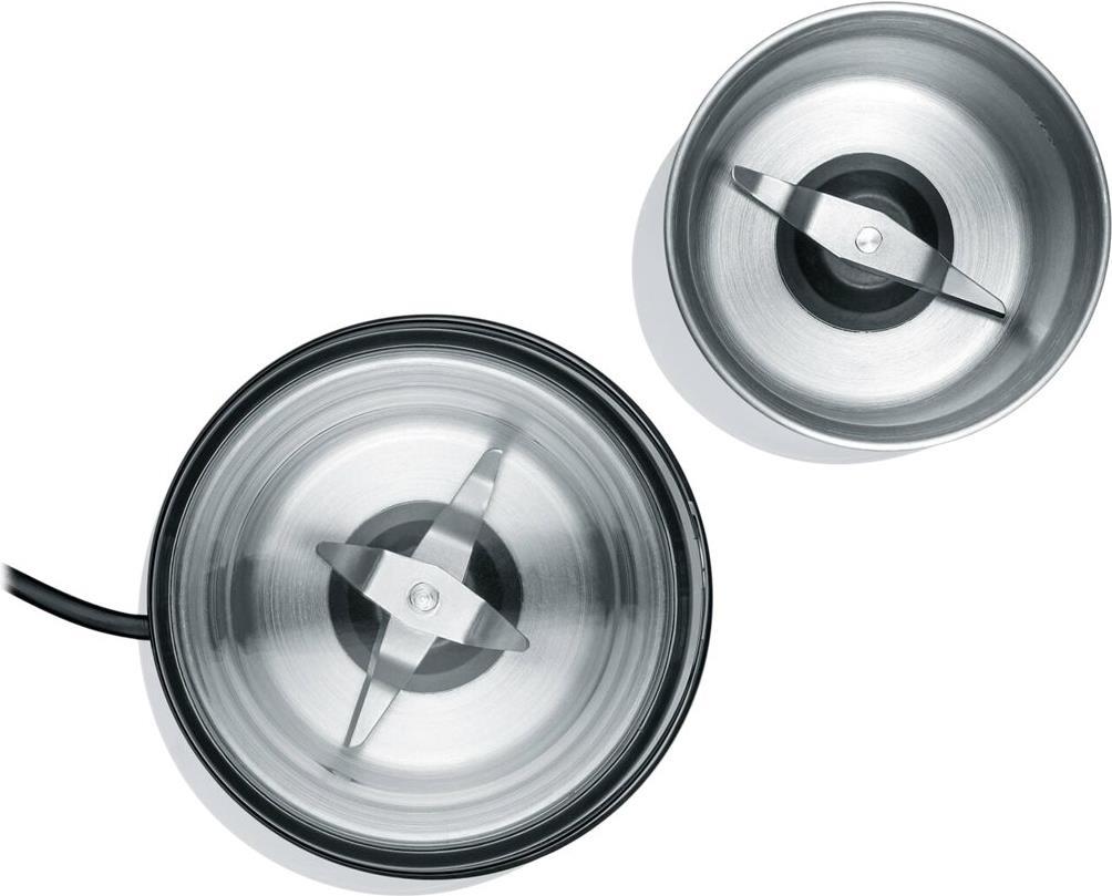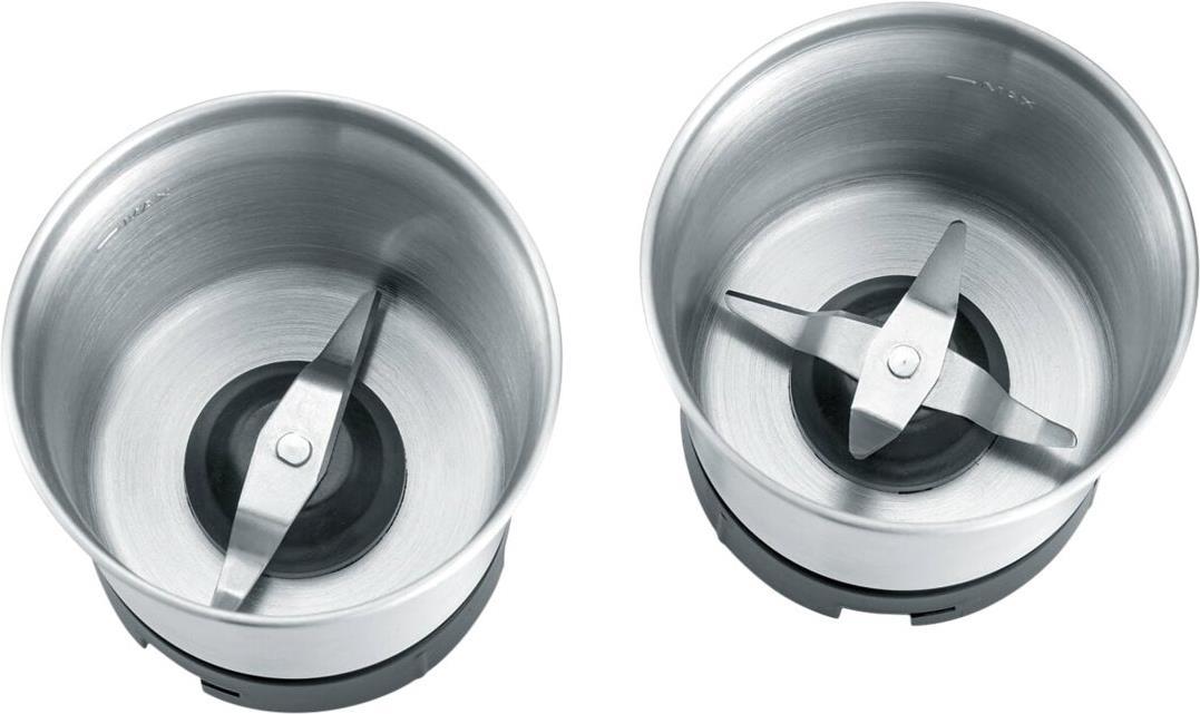 Die kompakte Allroundmühle steht genau zwischen unserer DeliKitchen und CoffeeKitchen, denn sie kann sowohl Kaffeebohnen - z. B. für die French Press - als auch Gewürze mahlen. Mit ihren zwei Messereinsätzen ist jede Zutat schnell zerkleinert.