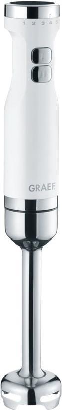 Graef HB501EU. Schüsselkapazität: 0,7 l, Rotationsgeschwindigkeit (max.): 13000 U/min. Typ: Pürierstab, Produktfarbe: Edelstahl, Weiß. Gehäusematerial: Kunststoff, Material Messer: Edelstahl. Energiequelle: AC, Motorleistung: 800 W, AC Eingangsspannung: 230 V. Breite: 55 mm, Tiefe: 402 mm, Höhe: 65 mm (HB501EU)