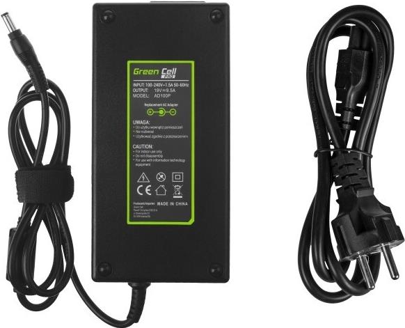 Green Cell AD100P. Zweck: Notebook, Netzteiltyp: Indoor, Eingangsspannung: 100 - 240 V. Produktfarbe: Schwarz. Kabellänge: 1,2 m, Breite: 168 mm, Tiefe: 83 mm. Menge pro Packung: 1 Stück(e), Mitgelieferte Kabel: AC, Verpackungsart: Box (GC-AD100P)