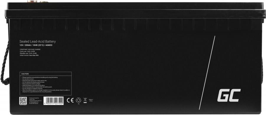 Green Cell AGM Battery Lead Acid 12V 200Ah Maintenance Free for Maintenance Free for electric motor and dinghy (AGM33) (AGM33)