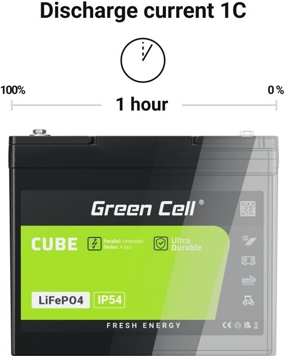 • Green Cell CUBE LiFePO4 Spezial-Akku LiFePo-Block Flachstecker Li-Ion 12.8 V 10 (GC-LFPGC12V10AH)