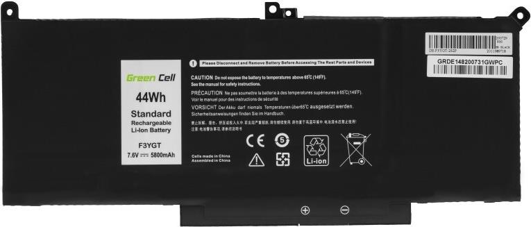 Green Cell - Laptop-Batterie (gleichwertig mit: Dell F3YGT) - Lithium-Polymer - 5800 mAh - 44 Wh - Schwarz - für Dell Latitude 7280, 7290, 7380, 7390, 7480, 7490 (GC-DE148)