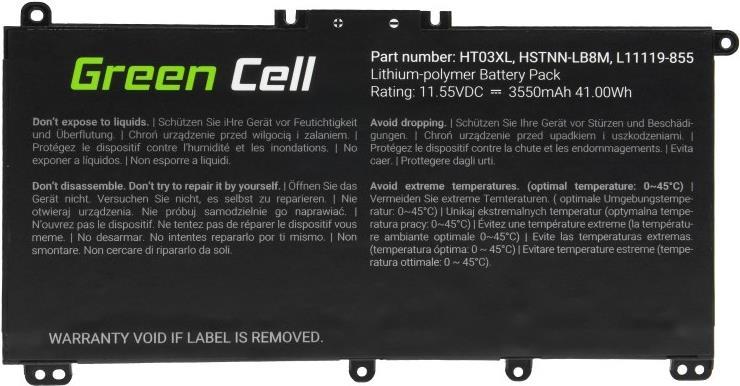 Green Cell - Laptop-Batterie (gleichwertig mit: HP HT03XL) - Lithium-Polymer - 3 Zellen - 3550 mAh - Schwarz - für HP 240 G7 Notebook, 245 G7 Notebook, 250 G7 Notebook, 255 G7 Notebook (GC-HP163)