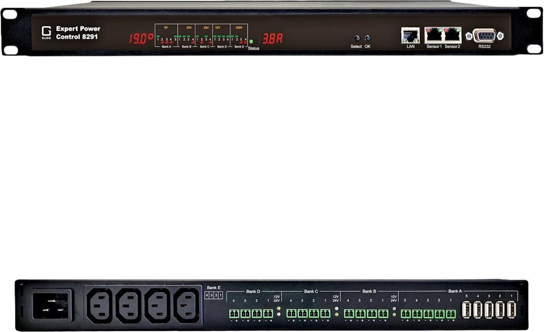 Der Expert Power Control 8291-1 ist eine Power Distribution Unit (PDU), die das Schalten und die Strommessung von elektrischen Geräten über ein TCP/IP-Netzwerk oder eine serielle Verbindung ermöglicht. Dabei lassen sich an dem Gerät bis zu 21 AV- und IT-Geräte anschließen. Das Besondere: dank des integrierten Qualitätsnetzteils können AC- und DC-Verbraucher mit unterschiedlichen Spannungen und Anschlussarten versorgt, gemessen und gesteuert werden: PCs, Server, Bildschirme, Verstärker, Router, NAS, externe Laufwerke etc.Durch das integrierte Industrienetzteil im Expert Power Control 8291-1 kann auf die raumgreifenden Steckernetzteile der angeschlossenen Verbraucher verzichtet werden.Die Lastausgänge sind jeweils separat über ein Webinterface, über die serielle Schnittstelle, über SNMP oder den Taster an der AC/DC Power Control schaltbar. Dabei ist Sicherheit groß geschrieben: jeder DC-Ausgang ist mit einer eigenen eFuse abgesichert, so dass Kurzschlüsse in angeschlossenen Geräten keine Auswirkungen auf andere Verbraucher haben. Des Weiteren ist ein Überspannungsschutz Typ 3 integriert und verhindert Beschädigung des Geräts und angeschlossener Verbraucher.Expert Power Control 8291-1 unterstützt SNMPv3, SSL, SSH und IPv6 sowie Telnet, Radius und Modbus TCP. Die Messung einer Vielzahl elektrischer Größen ermöglicht es dem Anwender, Stromspar-Potenziale in der IT-Umgebung zu erkennen und auszuschöpfen. Darüber hinaus erhält der Betreiber Warnmeldungen, wenn Fehlerströme auftreten (Differenzstrommessung Typ A). Dies ermöglicht vorbeugende Wartungsmaßnahmen noch bevor es zu Ausfallzeiten kommt.