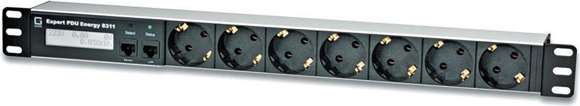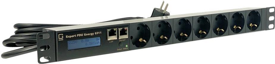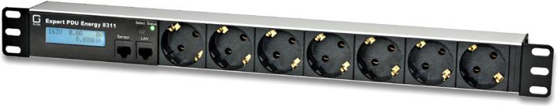 Zwei Energiezähler sind in Expert PDU Energy 8311 integriert und erlauben die Messung einer Vielzahl elektrischer Größen. Eine gut ablesbare beleuchtete LCD-Anzeige (zweizeilig) gibt Aufschluss über alle relevanten Informationen des Geräts. Dank Sensoranschluss können mit Plug-and-Play-Sensoren Umgebungstemperatur, Luftfeuchtigkeit und Luftdruck überwacht werden.
