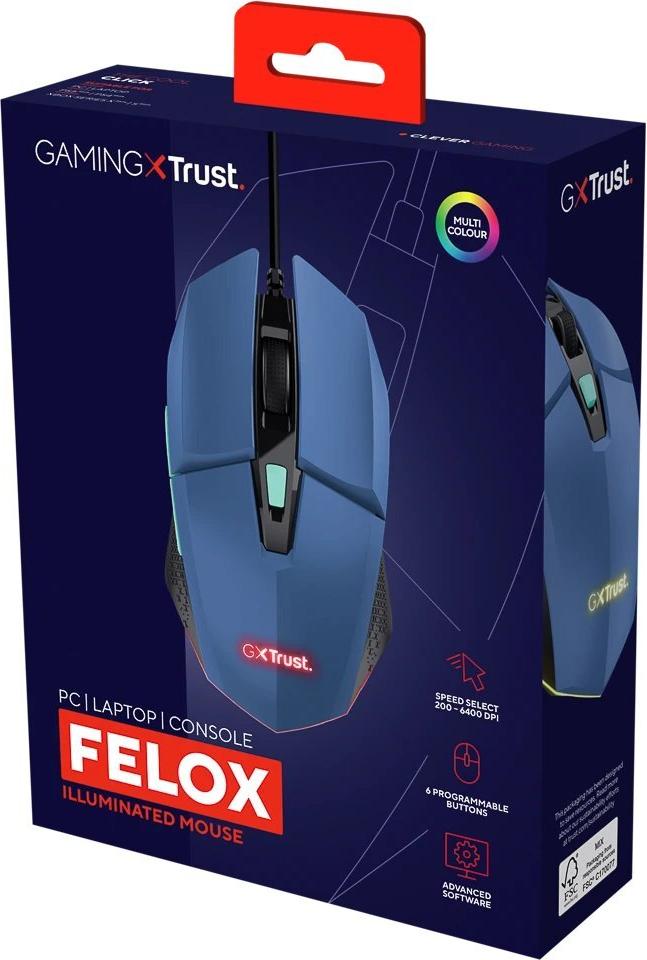 Trust GXT 109P Felox - Maus - illuminated, gaming - 6 Tasten - kabelgebunden - USB - brillantblau