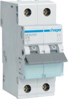 Hager MCN516. Anzahl der Pole: 2P. AC Eingangsfrequenz: 50/60 Hz, Nominale Stromabgabe: 16 A. Breite: 35 mm, Tiefe: 70 mm, Höhe: 83 mm (MCN516)