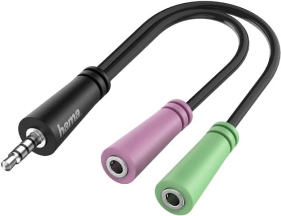 Hama - Audio-Adapter - 4-poliger Mini-Stecker (M) bis Stereo Mini-Klinkenstecker (W) - 15 cm - Schwarz