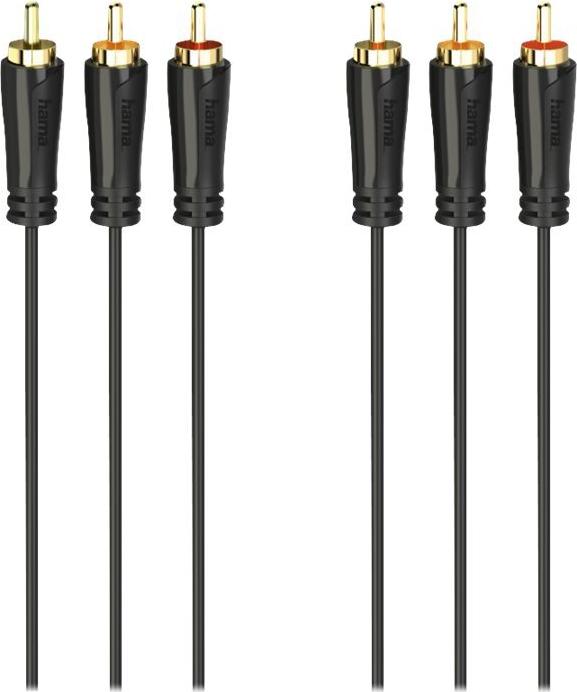 Hama - Video- / Audiokabel - RCA x 3 männlich bis RCA x 3 männlich - 1,5m - abgeschirmt - Schwarz (00205150)