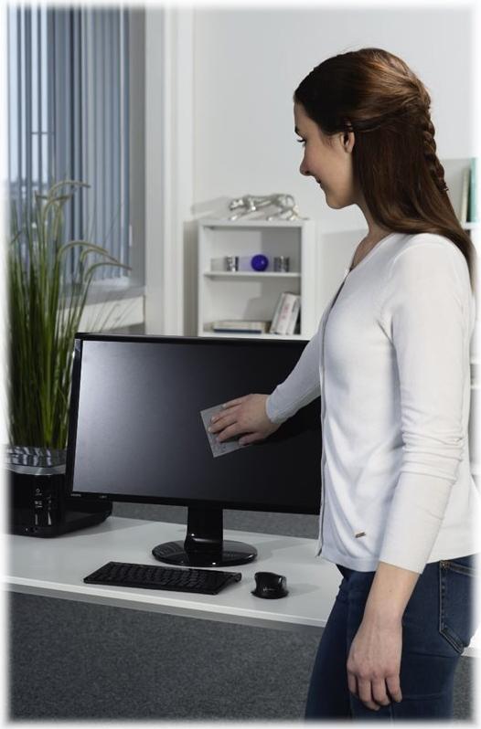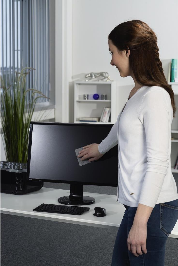 zur Reinigung der empfindlichen Oberflächen von Bildschirmen und Monitoren.